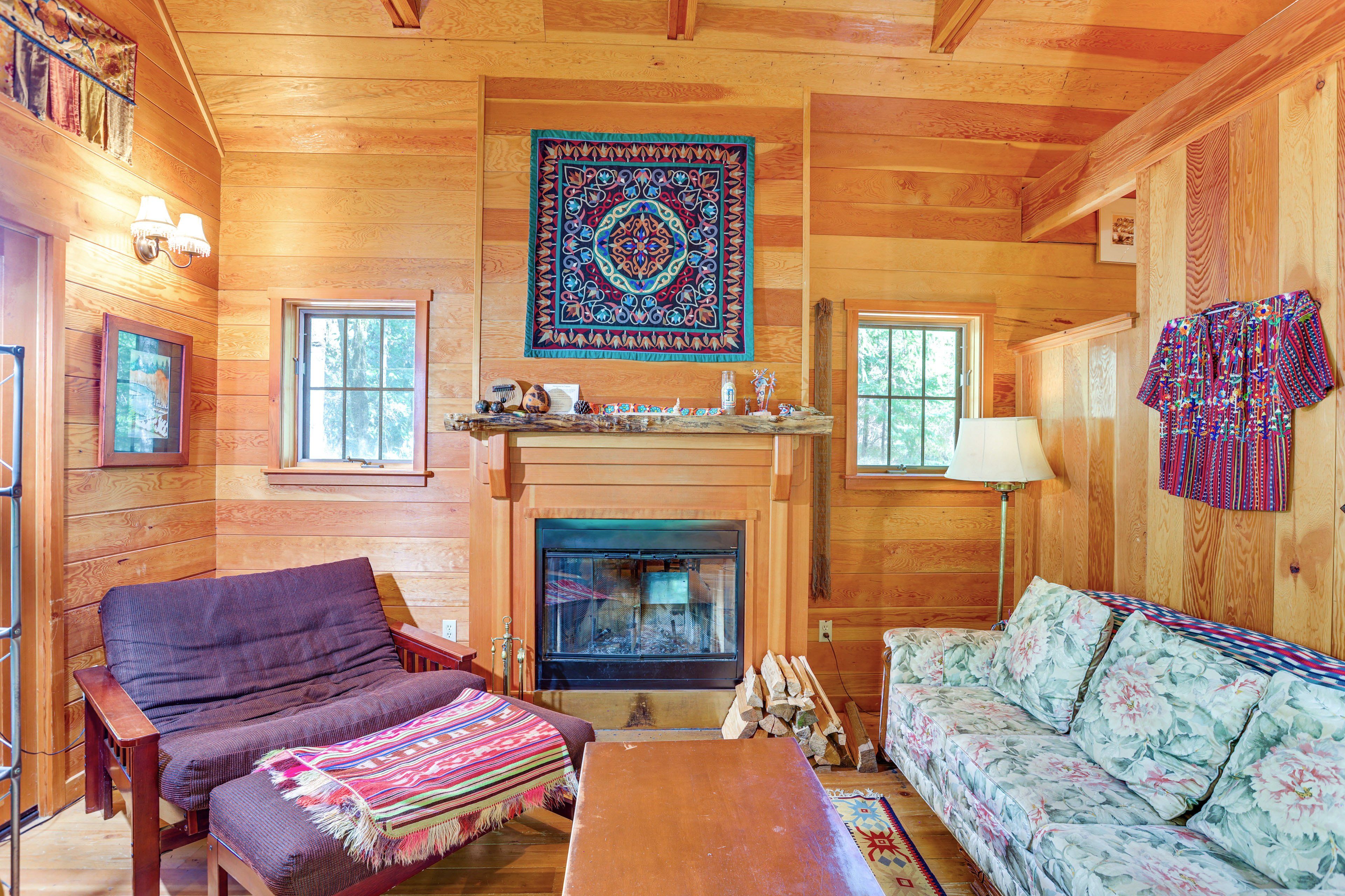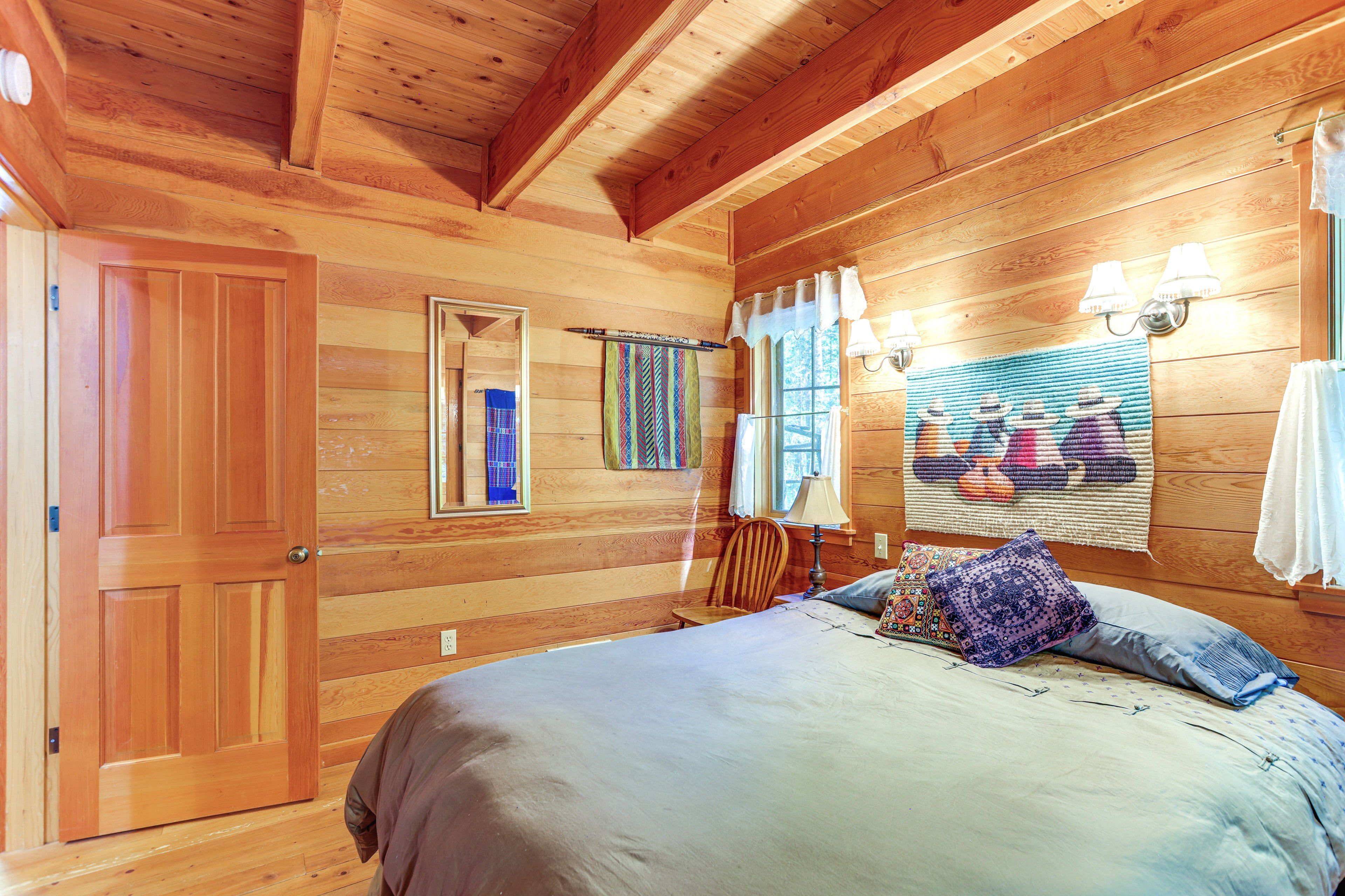 What a find! Cozy cabin decorated with indigenous fabrics and art from around the world. Peaceful, quiet, private getaway conveniently located close to McKinzie Bridge. Did I mention the outdoor bath ...